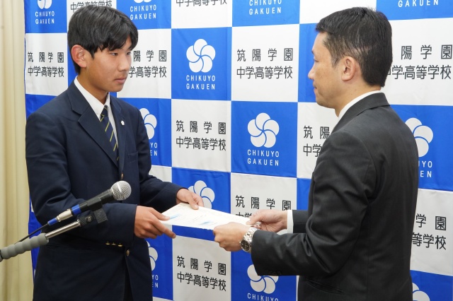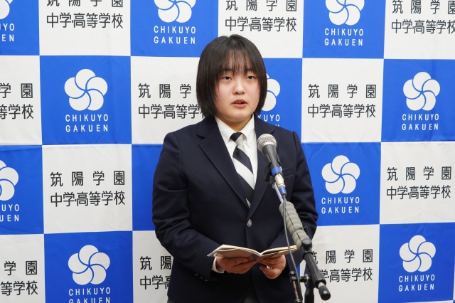また、「自分自身の人生をキラキラ輝くものにさせ、未来の社会をデザインする一員になりたい」という決意とともに、筑陽学園の校訓である「人を愛し ひとに愛される人間」を目指して頑張りたい。と今後の抱負とお礼の言葉が述べられました。