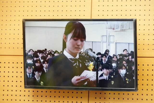その後、3月1日に行われた卒業式(ダイジェスト版)の映像を全校で視聴しました。