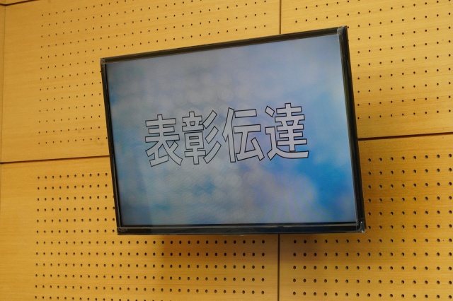 その後、表彰伝達が行われれ、校長先生より女子サッカー部のキャプテンと副キャプテンに賞状および優勝カップが手渡されました。