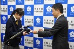 記念撮影では、上田副知事にも協力していただき、女子サッカー部のイナズマのサインをして記念撮影をしました。
