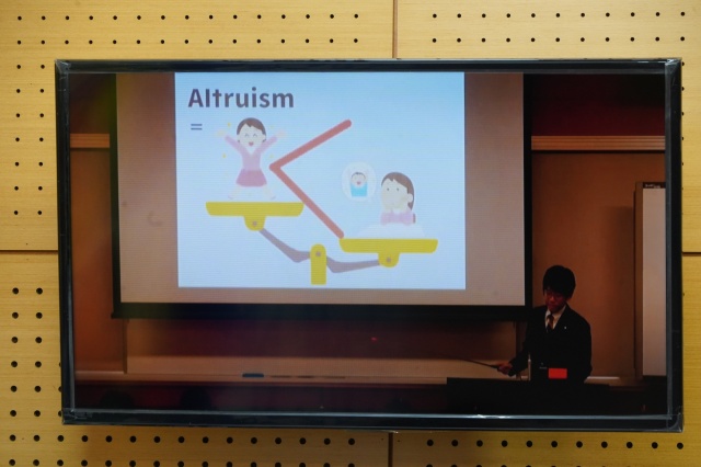 報告会では、生徒を代表して、中高一貫3年A組の谷山くんが