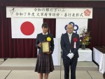 この度、本校の生徒2名が、その輝かしい功績を称えられ、令和7年度 太宰府市市長特別賞を受賞いたしました。