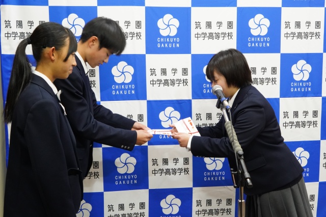 続いて、生徒会長より、赤い羽根募金の結果とお礼のあいさつがありました。