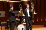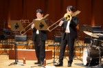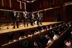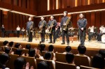 コンサートは2部構成で、第1部は、MUTEの皆さんによる演奏、第2部では、本校の吹奏楽部とのコラボレーションなど楽しい演奏をしていただきました。