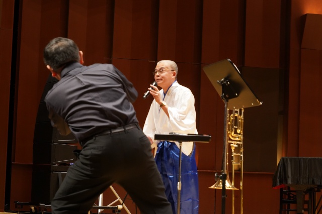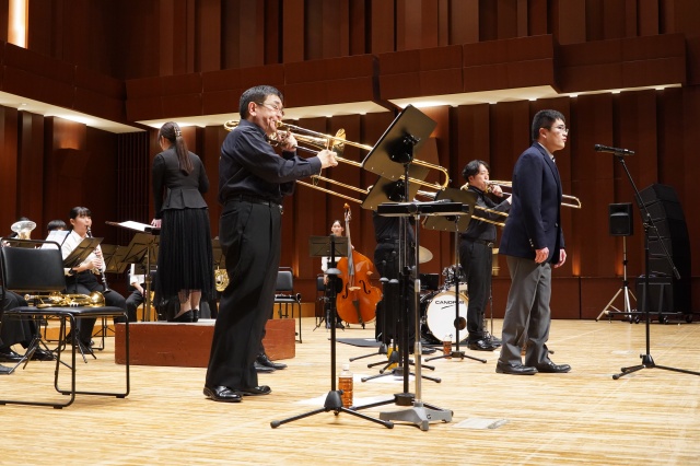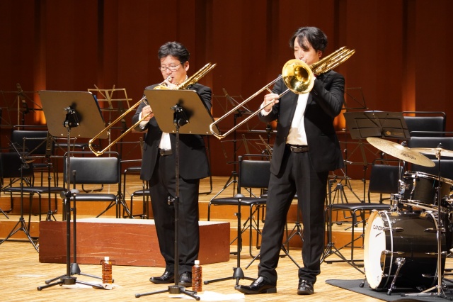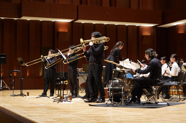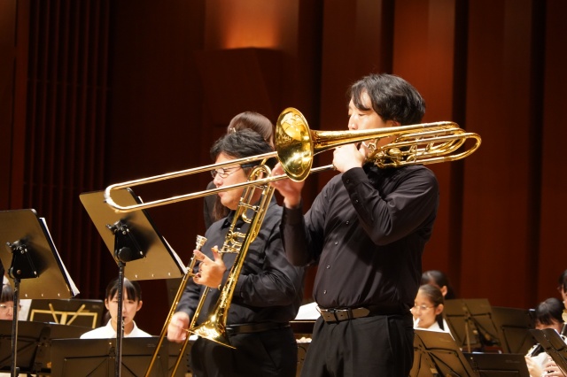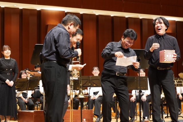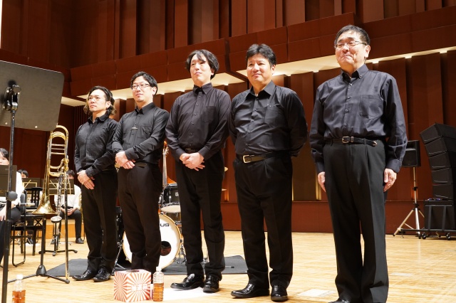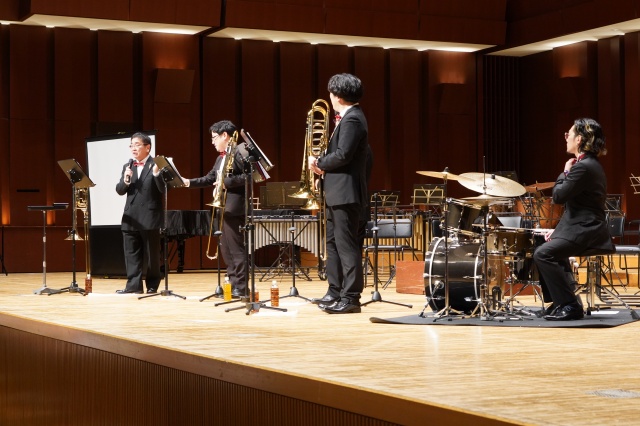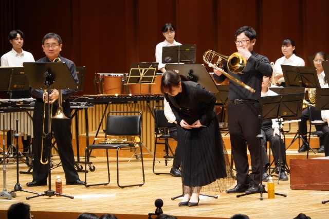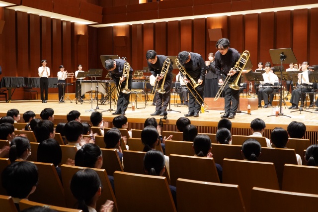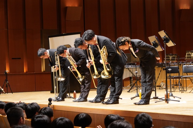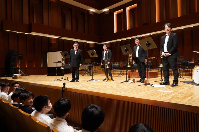 コンサートは2部構成で、第1部は、MUTEの皆さんによる演奏、第2部では、本校の吹奏楽部とのコラボレーションなど楽しい演奏をしていただきました。