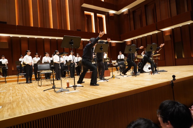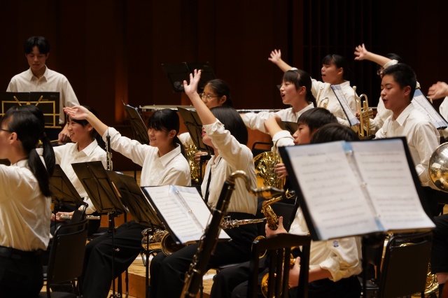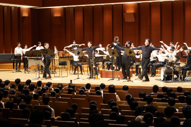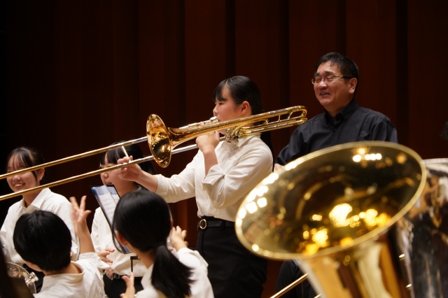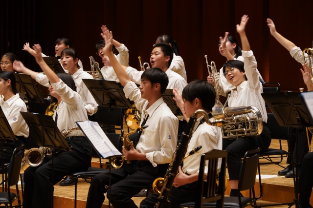 第2部は、本校の吹奏楽部とのコラボレーションで、最初に『宝島』で盛り上がりました。
