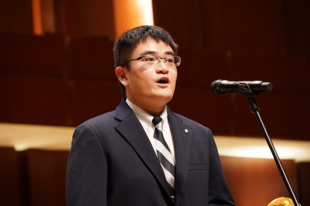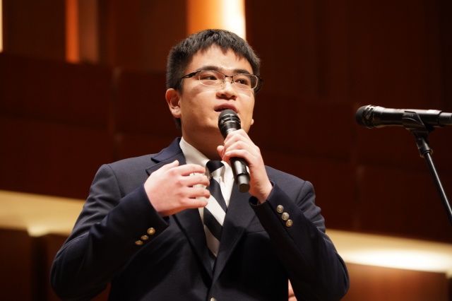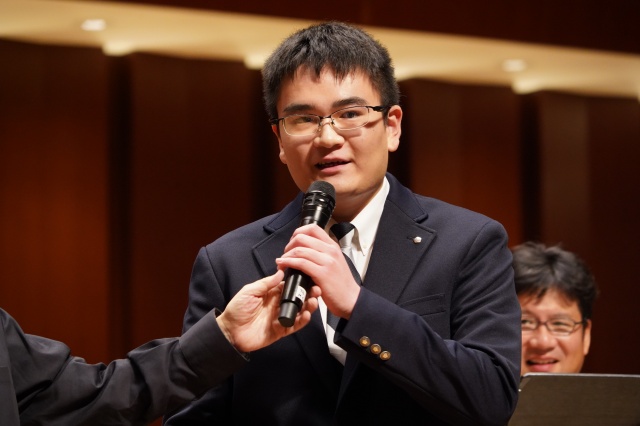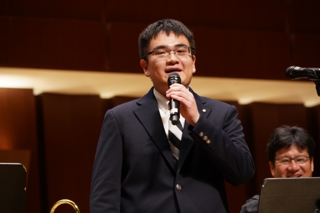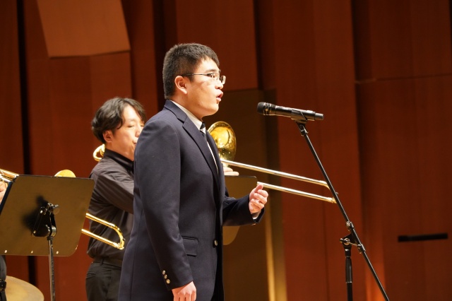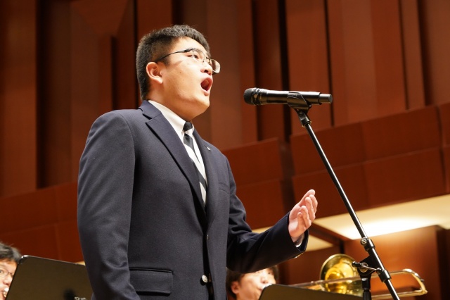 次に、現在、声楽で活躍されている3年生の石川斗真くんに登場していただき、イタリア歌曲である「Sogno」(夢)を披露。