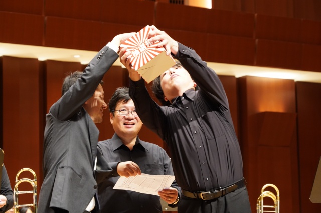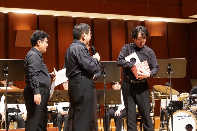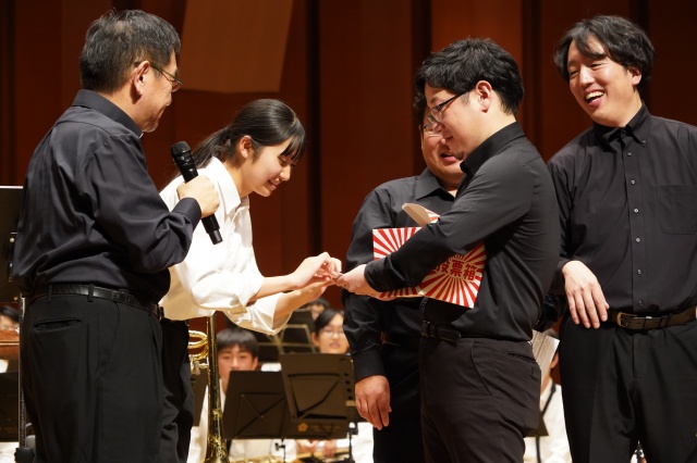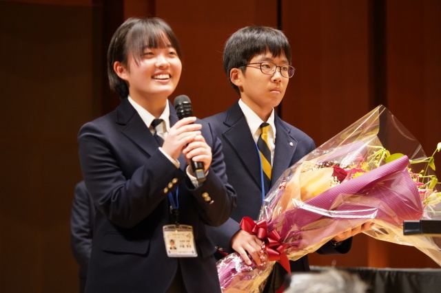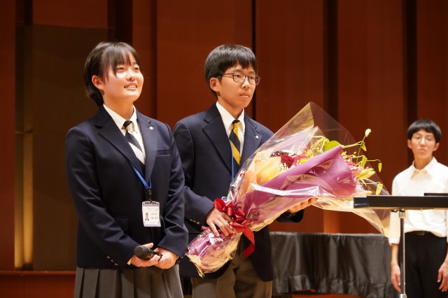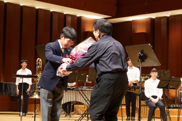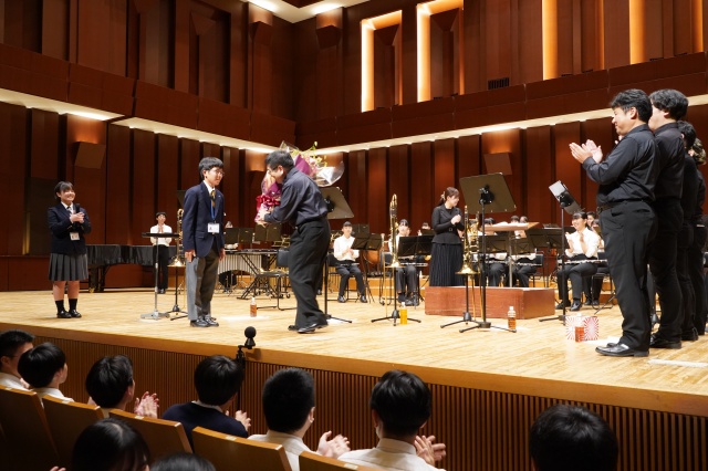 コンサート終了後に、中学と高校の生徒会長からMUTEの皆さんに花束が贈られました。