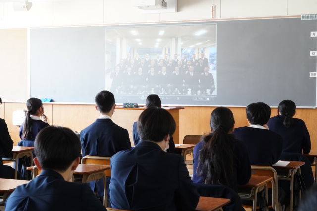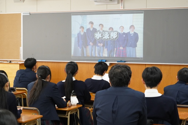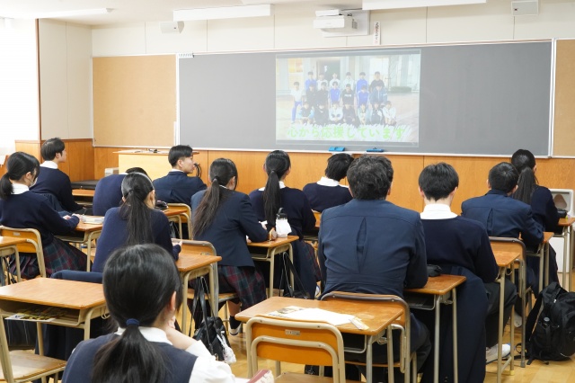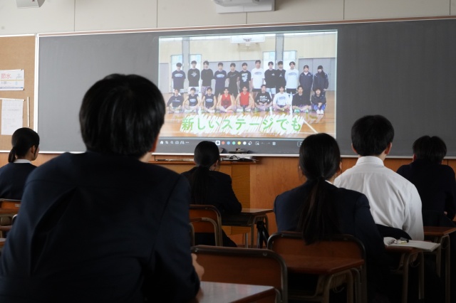 ビデオレターでは、部活動や生徒会、各実行委員会などの1・2年生が3年生に向けて卒業のお祝いメッセージを伝えました。