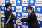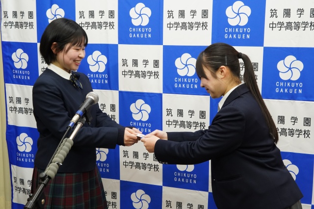 そして、卒業生の皆さんへ記念品が贈られ、前生徒会長の髙橋さんが代表して受け取りました。
