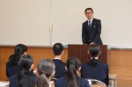 続いて、学年主任の先生よりお話しがり、最後に、生徒を代表して玉川さんが