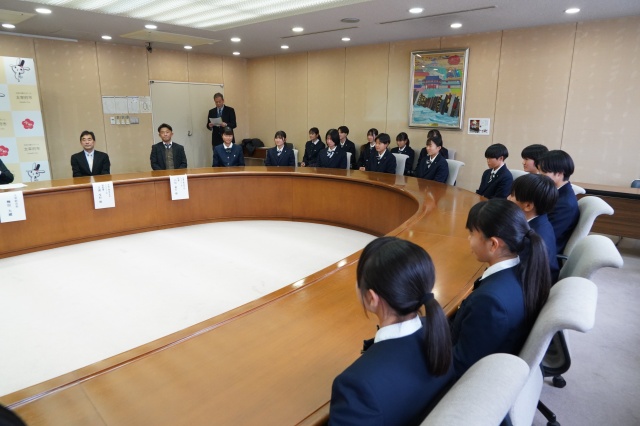 表敬訪問では、まず、本校校長より全国大会への出場報告の挨拶がありました。