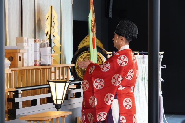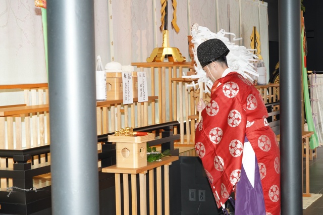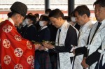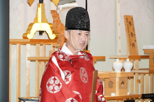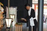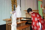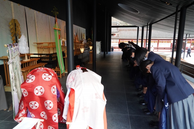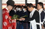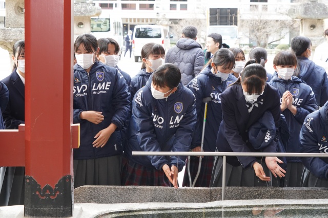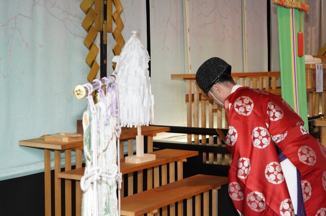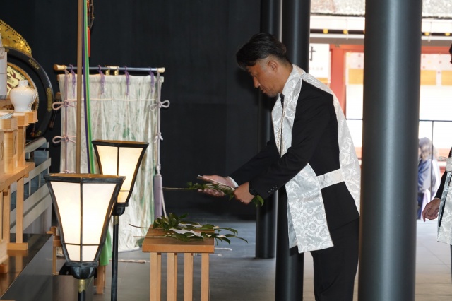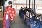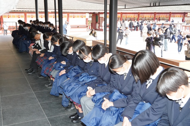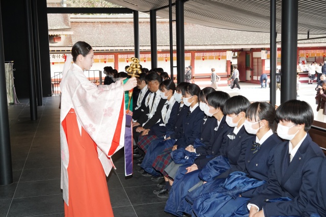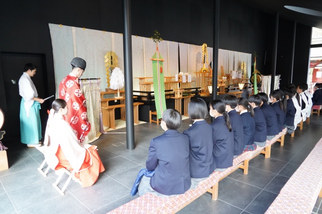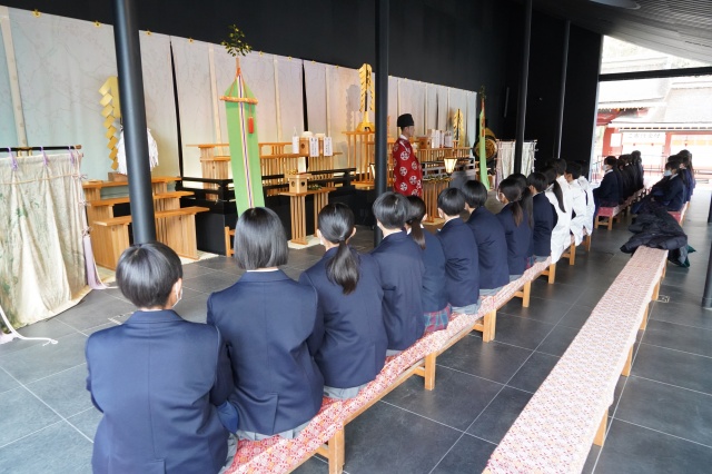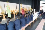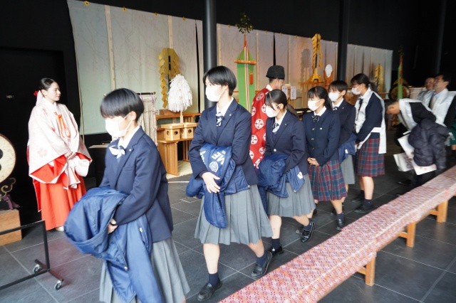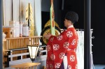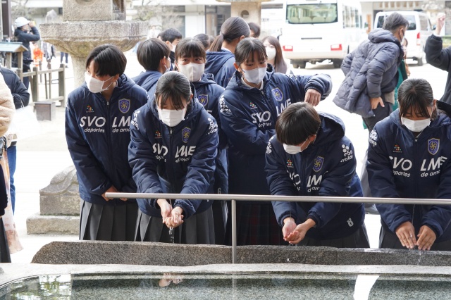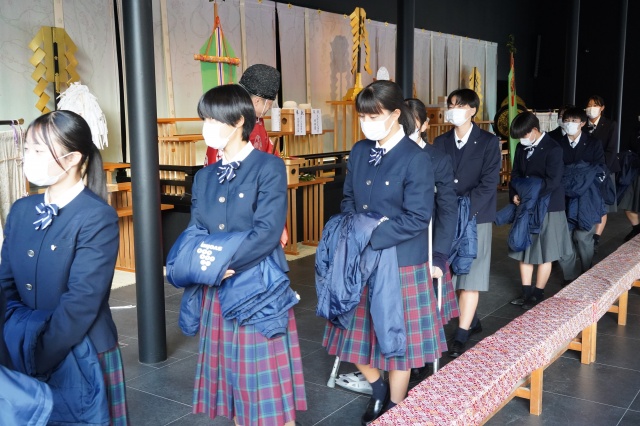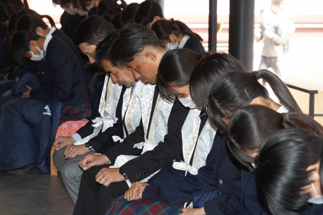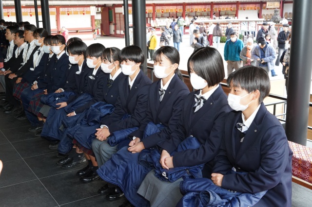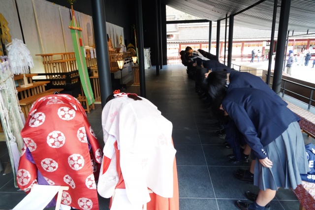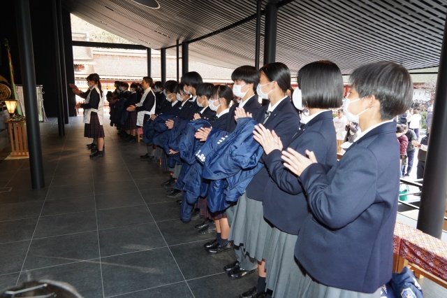 祈願では、必勝祈願の祝詞が奏上され、校長先生、総監督、監督と主将が玉串奉奠をし、全員で全国制覇を願いました。