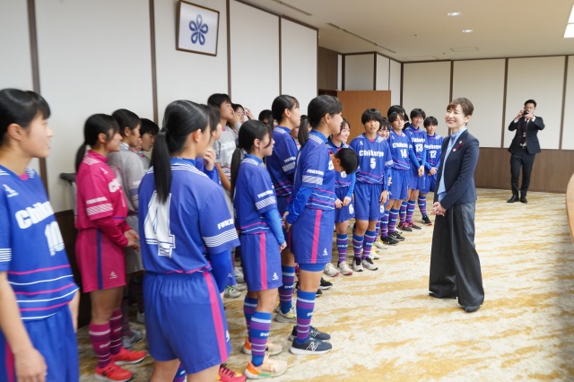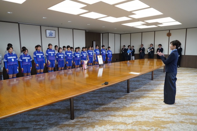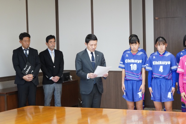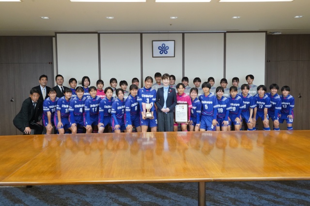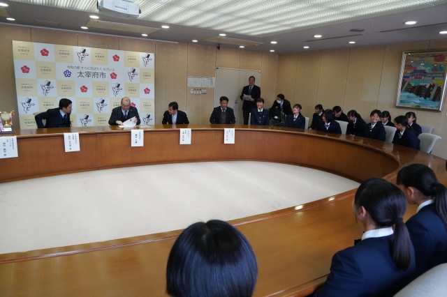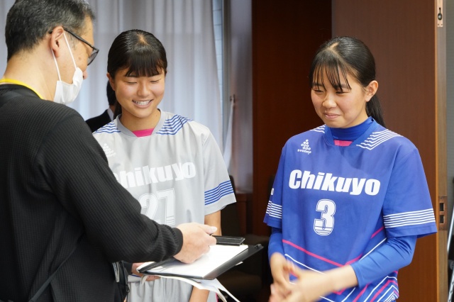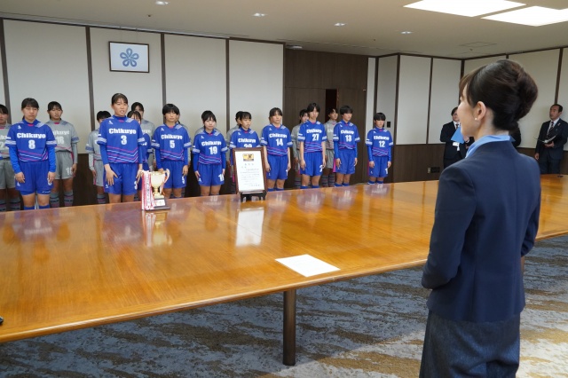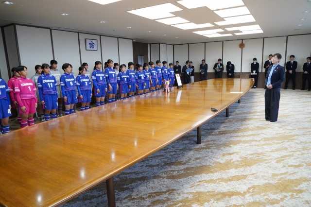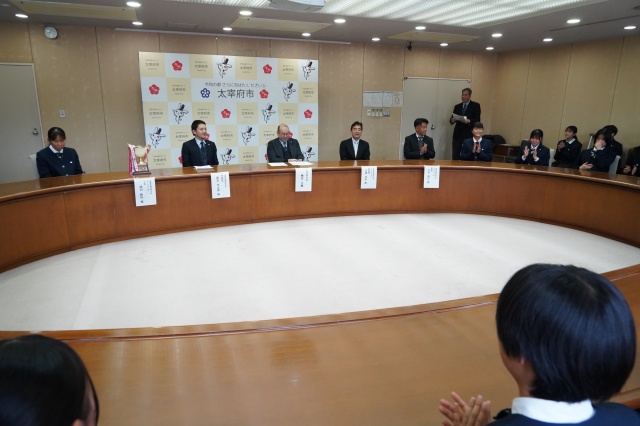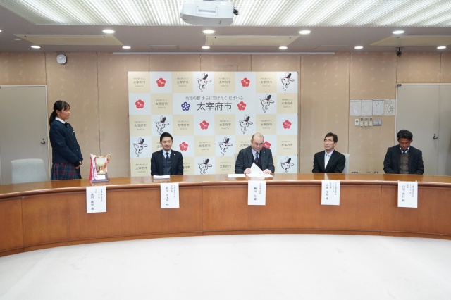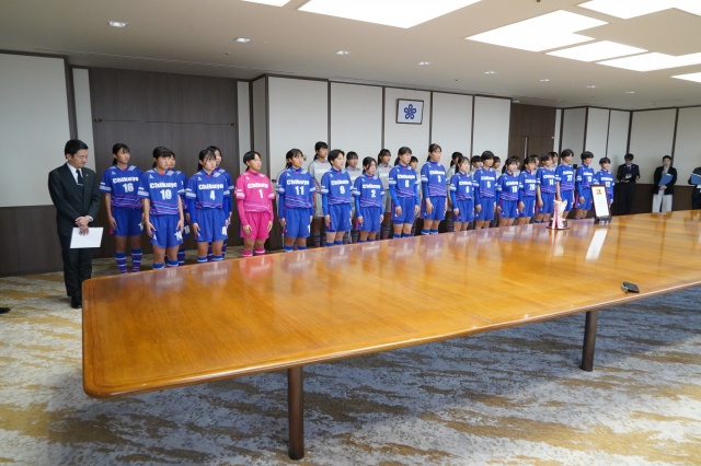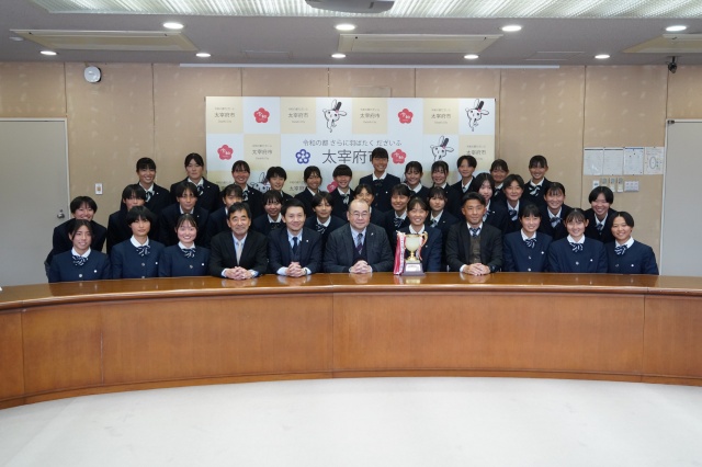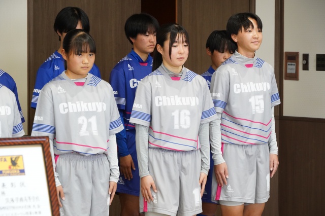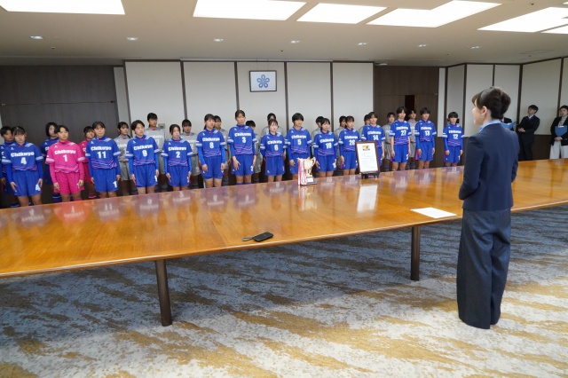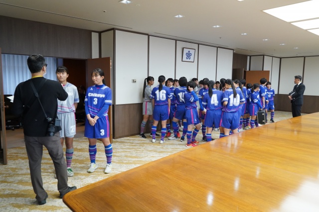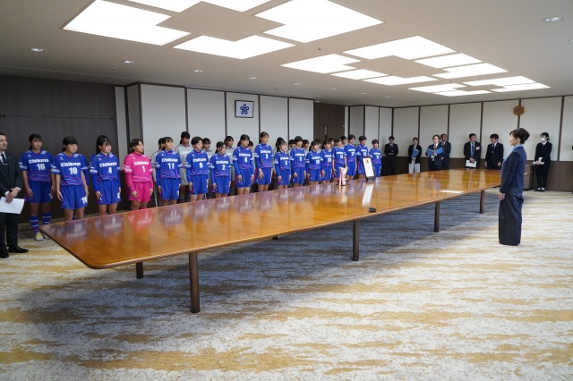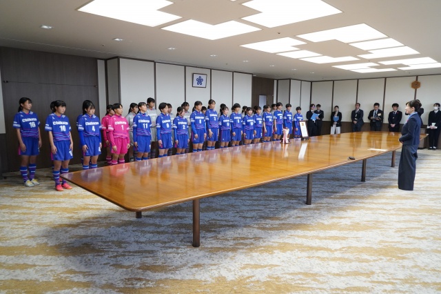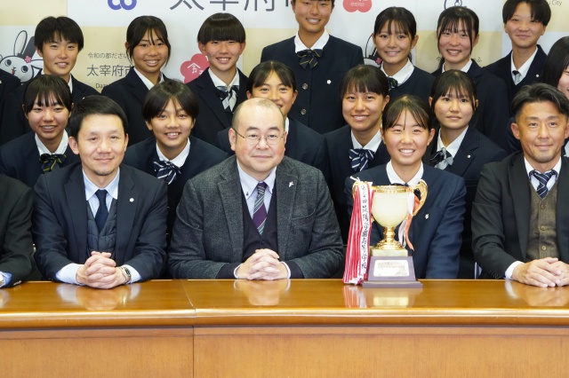 全国大会の出場が決定した女子サッカー部が12月16日に太宰府市長、12月17日に福岡県副知事を表敬訪問しました。