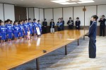 選手たちは、緊張しながらも力強く「はい」と返事をしていました。