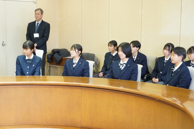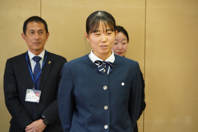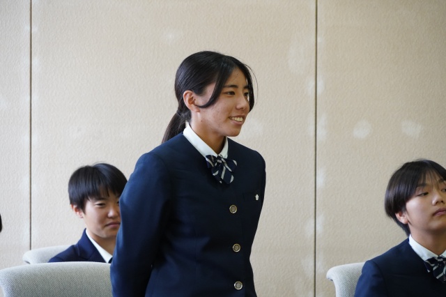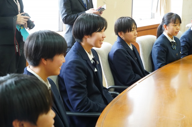 表敬訪問では、校長先生より、上田副知事に全国大会出場の報告が行われました。