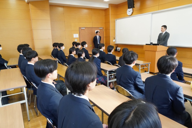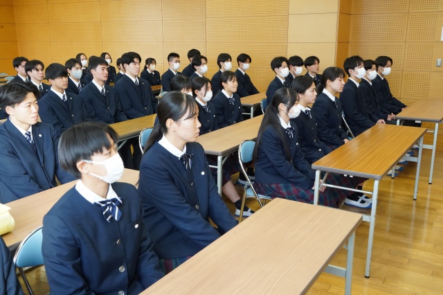 2月20日(金)に、3月1日に卒業する部活動奨学生の卒業報告会が視聴覚ホールで行われました。