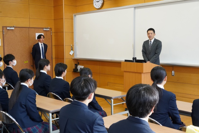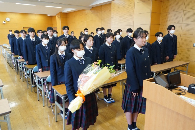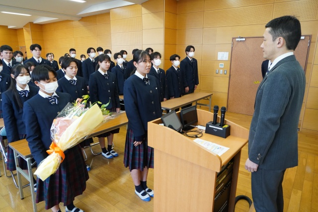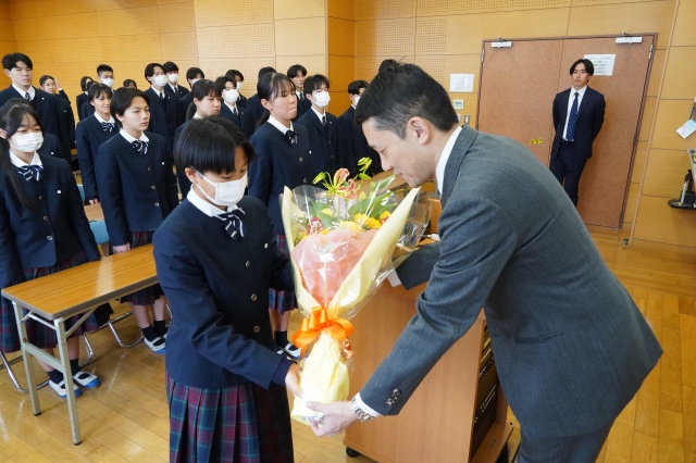 そして、普通科3年11組の髙田さんより、校長先生へ花束が贈られました。