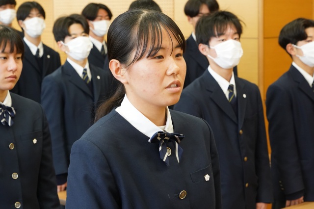 続いて、部活動奨学生の生徒を代表して普通科3年11組の池内さんより、